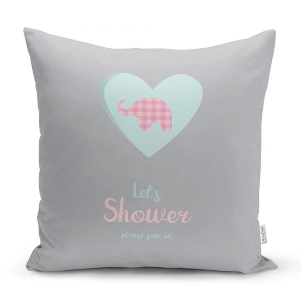 Gri Zeminli Lets Shower Fil Desenli Bebek Odası Yastık Kılıfı