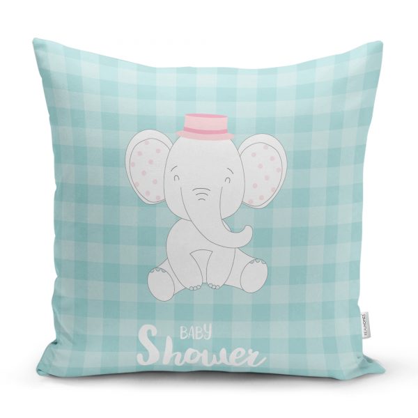 Yeşil Ekose Zeminli Fil Desenli Bebek Odası Yastık Kılıfı