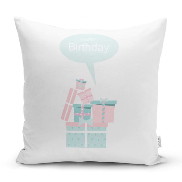 Beyaz Zeminde Doğum Günü Hediyeler Desenli Bebek Odası Yastık Kılıfı