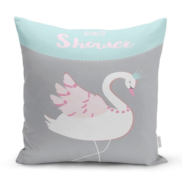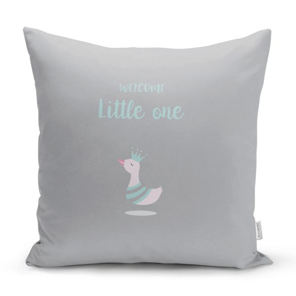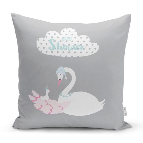 Gri Zeminli Kuğu Motifli Çocuk Odası Yastık Kılıfı