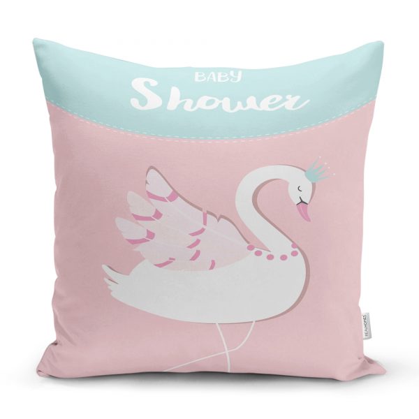 Pembe Zeminli Kuğu Motifli Çocuk Odası Yastık Kılıfı