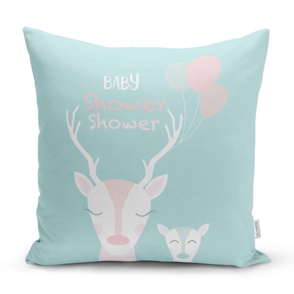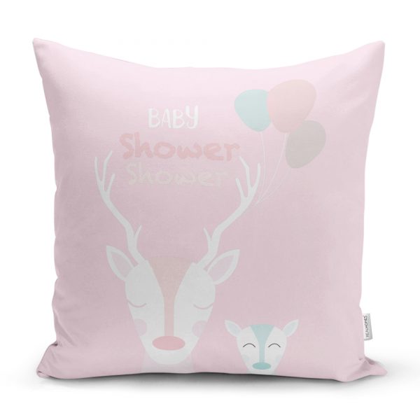 Pembe Zeminde Sevimli Geyik Tasarımlı Çocuk Odası Yastık Kılıfı