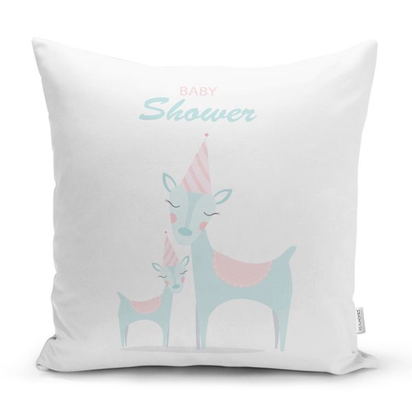 Beyaz Zeminli Sevimli Geyik Tasarımlı Bebek Odası Yastık Kılıfı