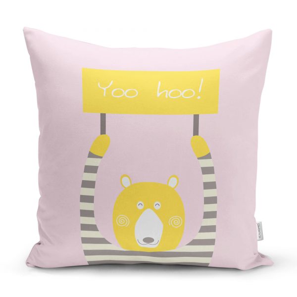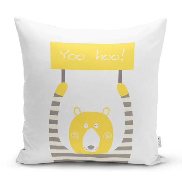 Beyaz Zeminde Ayıcık Motifli Dijital Baskılı Çocuk Odası Yastık Kılıfı