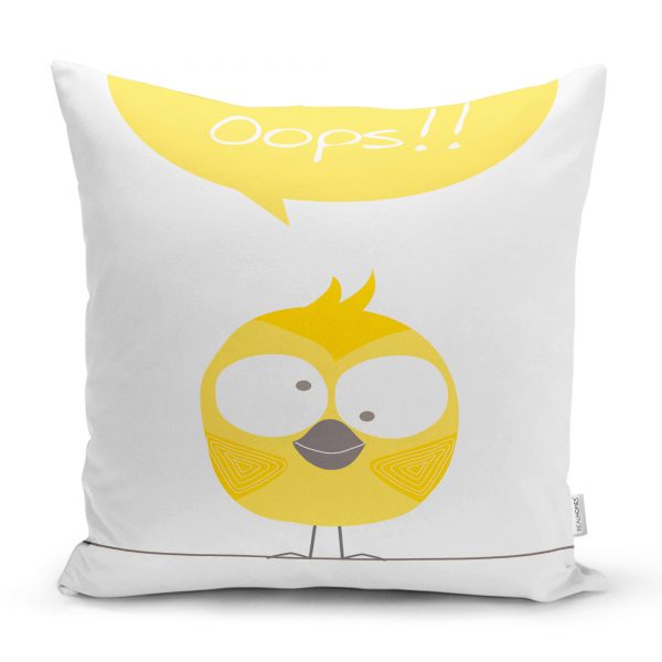 Sarı Kuş Motifli Dijital Baskılı Çocuk Odası Yastık Kılıfı
