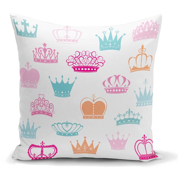 Taç Motifli Renkli Dijital Baskılı Yastık Kırlent Kılıfı