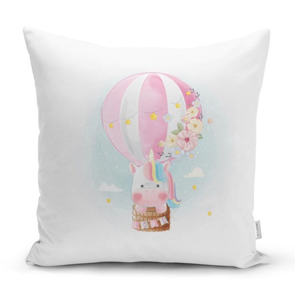 Uçan Balon Desenli Dijital Baskılı Çocuk Odası Yastık Kırlent Kılıfı