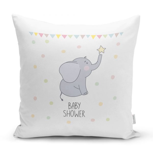 Sevimli Fil Baby Shower Tasarımlı Çocuk Odası Yastık Kırlent Kılıfı