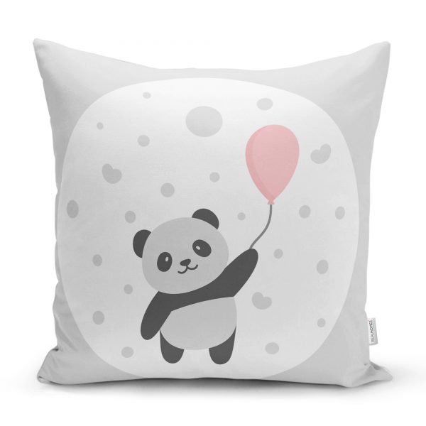 Sevimli Panda Tasarımlı Dijital Baskılı Çocuk Odası Yastık Kırlent Kılıfı