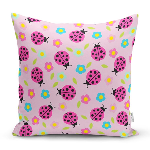 Pembe Zeminde Ayıcık Motifli Dijital Baskılı Çocuk Odası Dikdörtgen Yastık Kılıfı