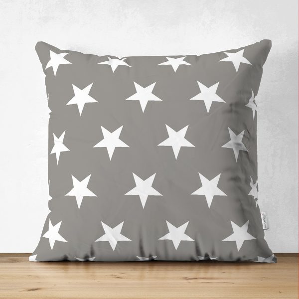 Çift Taraflı Yıldız Desenli Dijital Baskılı Dekoratif Süet Yastık Kırlent Kılıfı