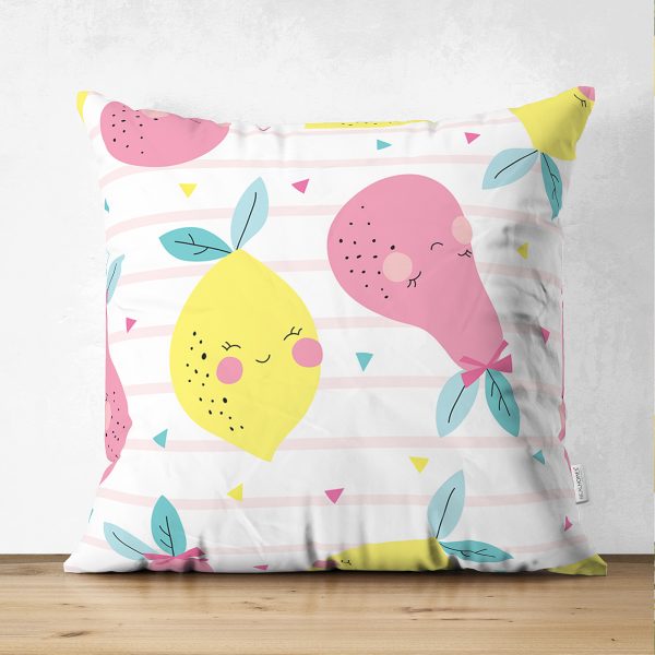 Çift Taraflı Geometrik ve Limon Desenli 3D Dijital Baskılı Süet Yastık Kırlent Kılıfı