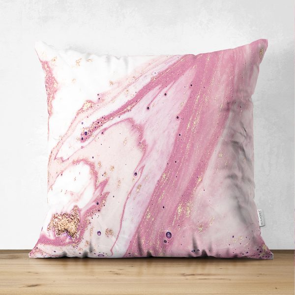 Çift Taraflı Gold ve Pembe Renkli Mermer Desenli Modern Süet Yastık Kırlent Kılıfı