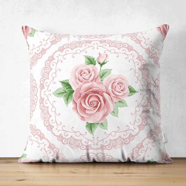 Hint Motifli Gül Desenli Çift Taraflı Dijital Baskılı Süet Yastık Kırlent Kılıfı