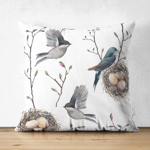 Daldaki Kuşlar Temalı Çift Taraflı Dijital Baskılı Modern Süet Kırlent Kılıfı