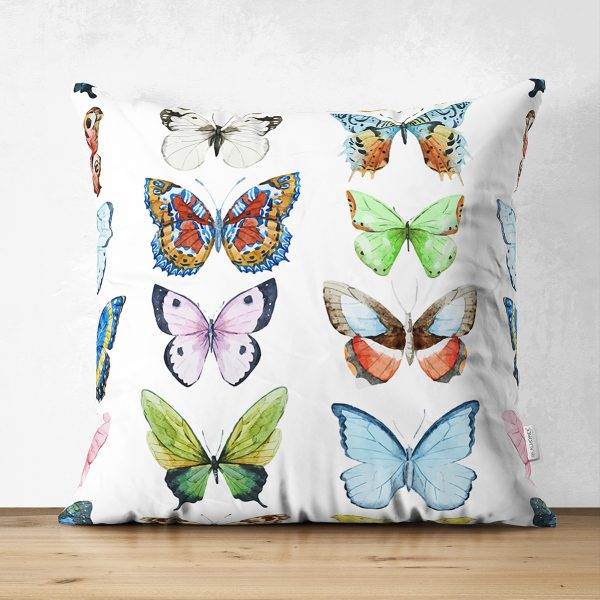 Renkli Kelebek Resimli Çift Taraflı Dijital Baskılı Modern Süet Yastık Kılıfı