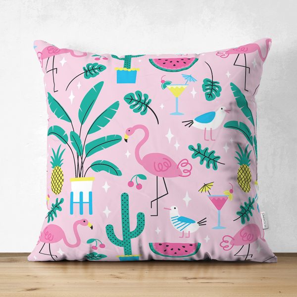 Realhomes Çift Taraflı Pembe Zeminli Flamingo Tasarımlı Dijital Baskılı Modern Süet Yastık Kırlent Kılıfı