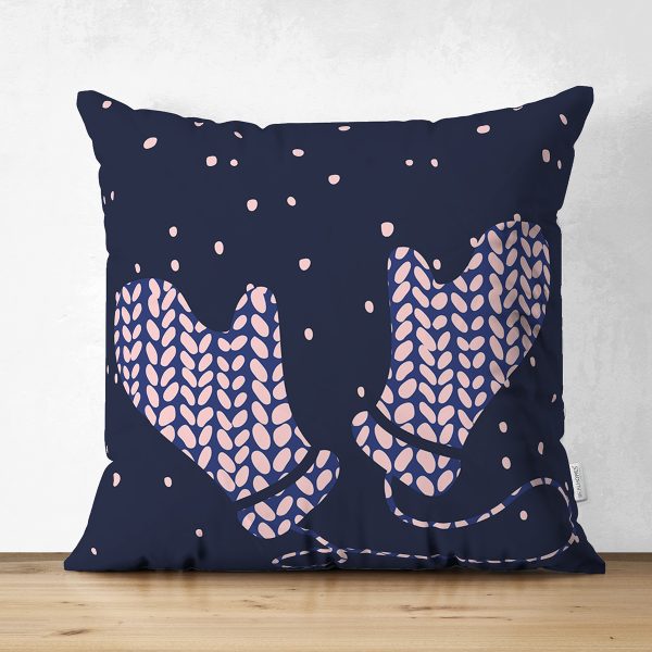 Çift Taraflı Koyu Lacivert Zemin Eldiven Tasarımlı Dijital Baskılı Dekoratif Süet Yastık Kırlent Kılıfı