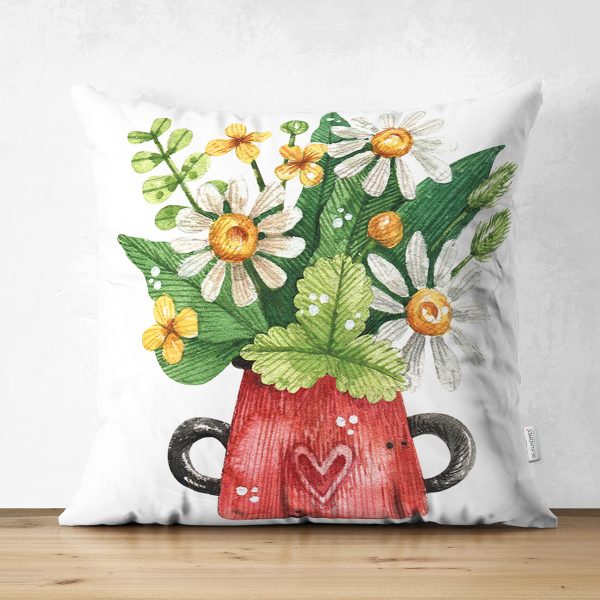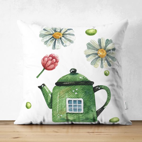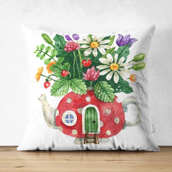Çift Taraflı Şirin Çaydanlık Vazo Tasarımlı Dijital Baskılı Modern Süet Yastık Kırlent Kılıfı