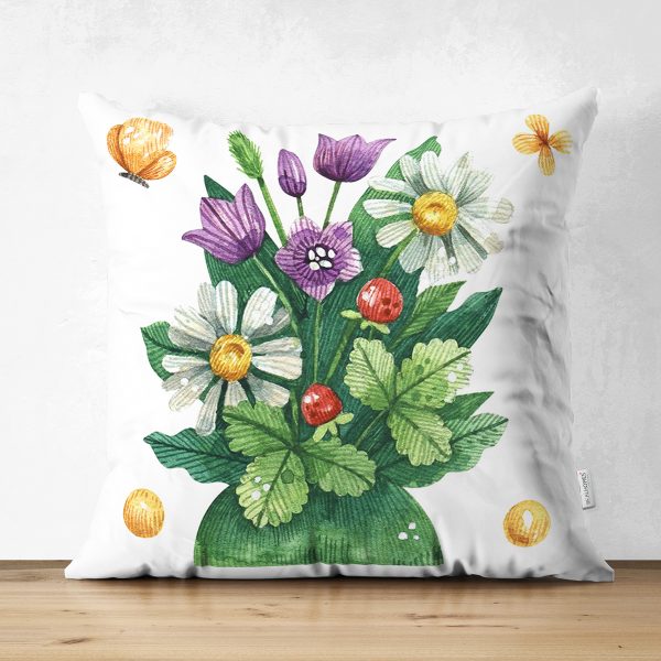 Çift Taraflı Natural Floral Tasarımlı Dijital Baskılı Dekoratif Süet Yastık Kırlent Kılıfı