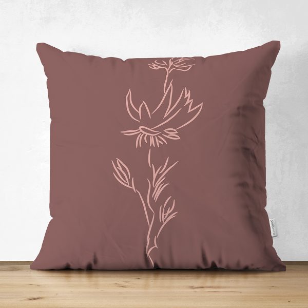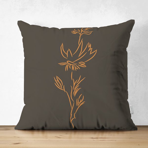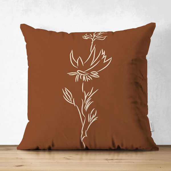 Çift Taraflı Kahve Zemin Minimalist Çizimli Dijital Baskılı Modern Süet Yastık Kırlent Kılıfı