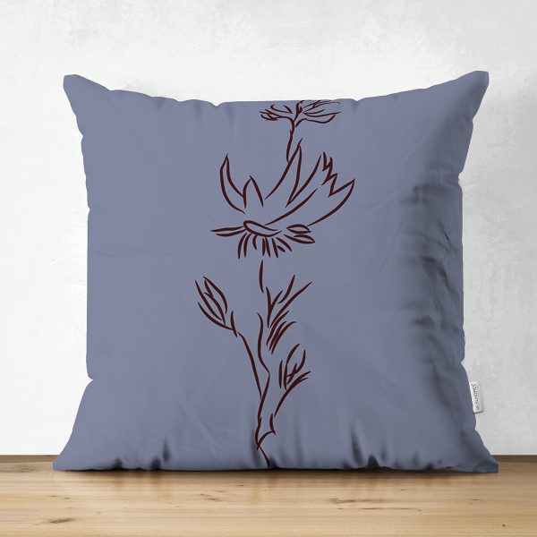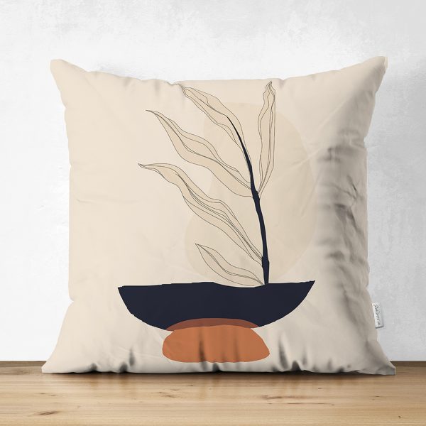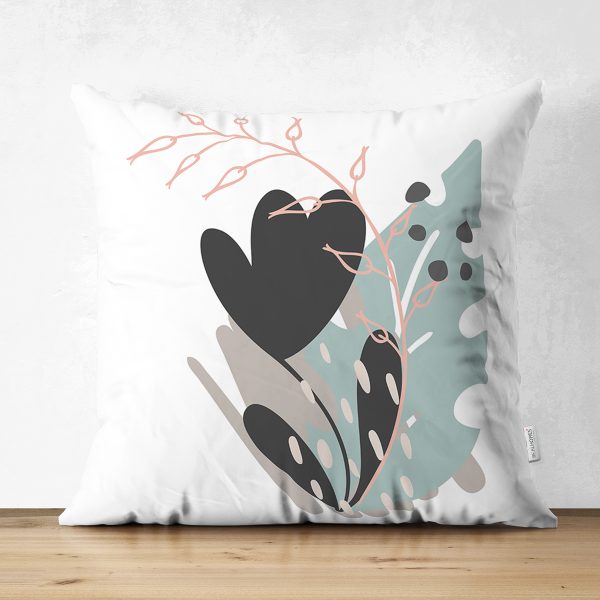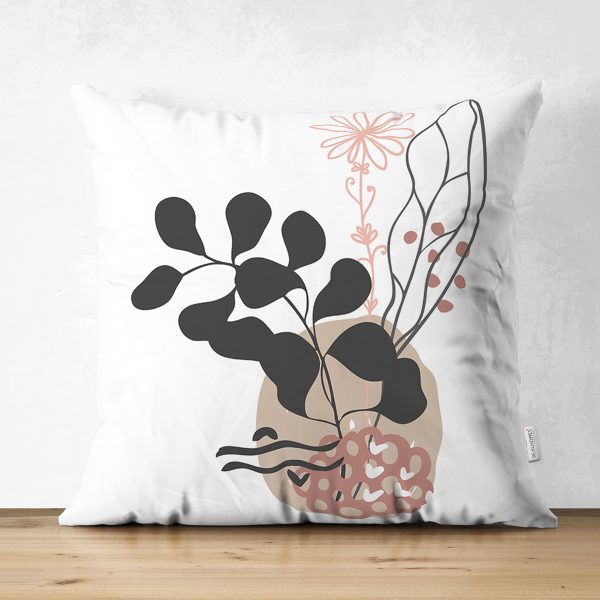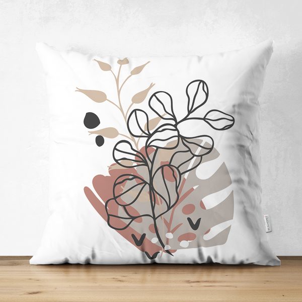 Çift Taraflı Sanatsal Yaprak Çizimli Dijital Baskılı Modern Süet Yastık Kırlent Kılıfı