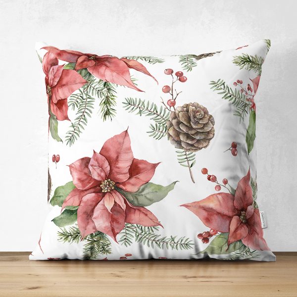 Çift Taraflı Kırmızı Gül & Kozalak Tasarımlı Dijital Baskılı Modern Süet Yastık Kırlent Kılıfı