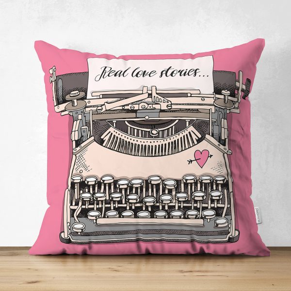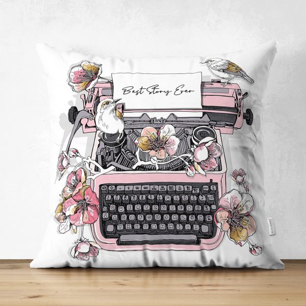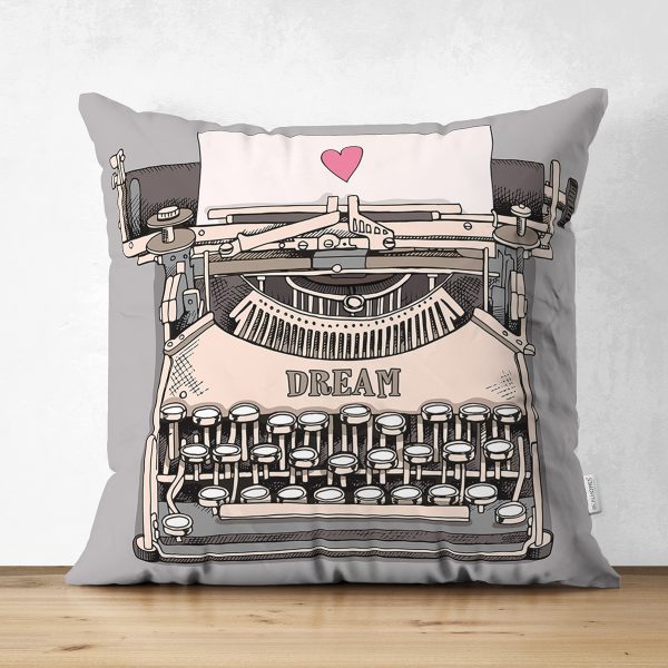 Çift Taraflı Antika Daktilo Motifli Dijital Baskılı Dekoratif Süet Yastık Kırlent Kılıfı