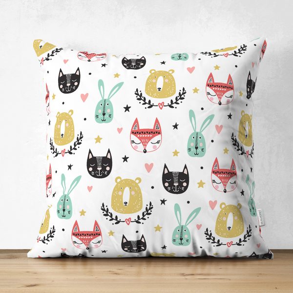 Realhomes Çift Taraflı Sevimli Minik Hayvanlar Çizimli Özel Tasarım Dijital Baskılı Modern Süet Yastık Kırlent Kılıfı