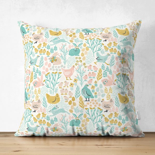 Çift Taraflı Bebek Desenli Tavuk Ve Tavşan Dijital Baskılı Özel Tasarım Modern Süet Yastık Kırlent Kılıfı