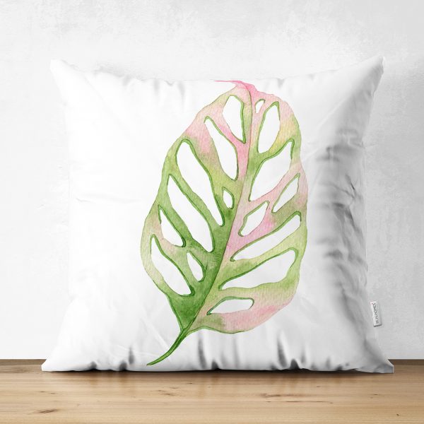 Çift Taraflı Egzotik Yaprak Tasarımlı Dijital Baskılı Modern Süet Yastık Kırlent Kılıfı
