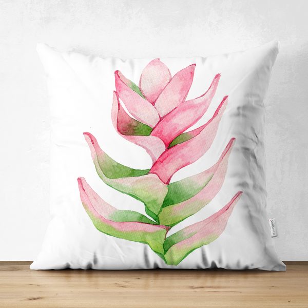 Çift Taraflı Egzotik Yaprak Tasarımlı Dijital Baskılı Dekoratif Süet Yastık Kırlent Kılıfı