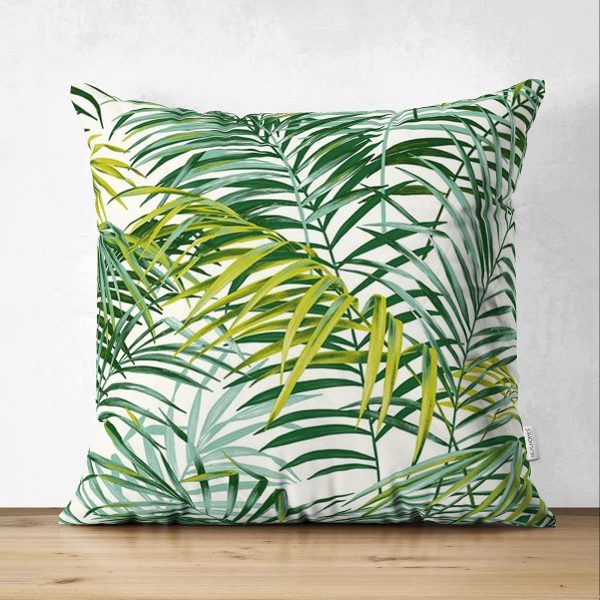 Çift Taraflı Yeşil Palmiye Yaprakları Özel Tasarımlı Dekoratif Süet Yastık Kırlent Kılıfı