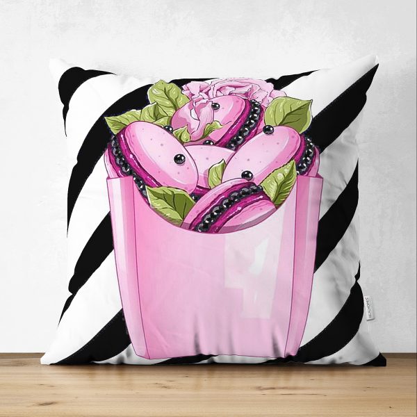 Çift Taraflı Coco Pops Pempe Siyah Tasarımlı Modern Dekoratif Süet Yastık Kırlent Kılıfı