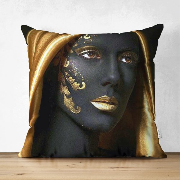 Çift Taraflı Afrika Kadın İnsan Figürlü Modern Dekoratif Süet Yastık Kırlent Kılıfı
