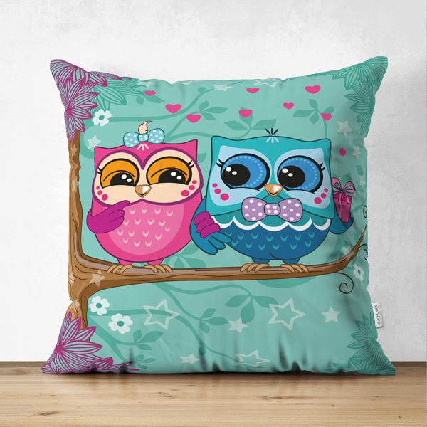 Çift Taraflı Ağaçta Sevimli Baykuşlar Modern Tasarım Dijital Baskılı Süet Yastık Kırlent Kılıfı