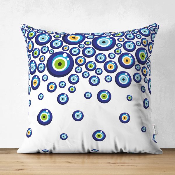 Realhomes Çift Taraflı Nazar Boncuğu Motifli Dijital Baskılı Modern Süet Yastık Kırlent Kılıfı