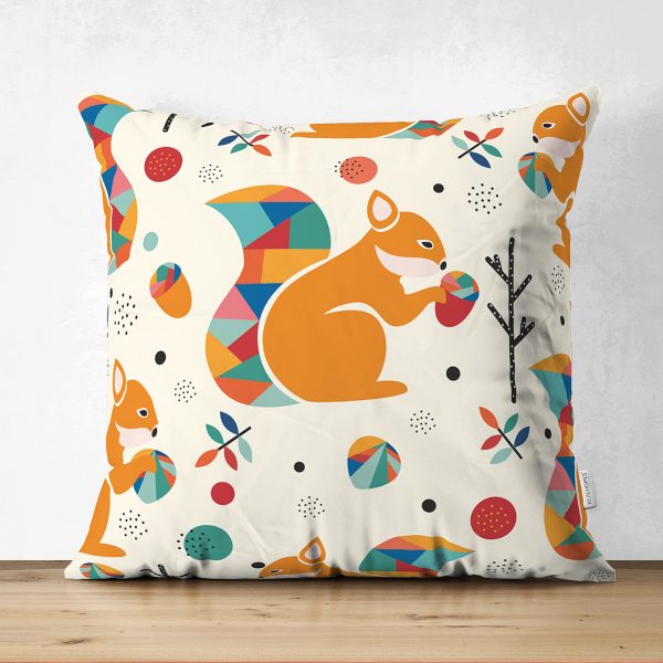 Realhomes Çift Taraflı Fındık Kurdu Sincap Dijital Baskılı Modern Süet Kırlent Kılıfı