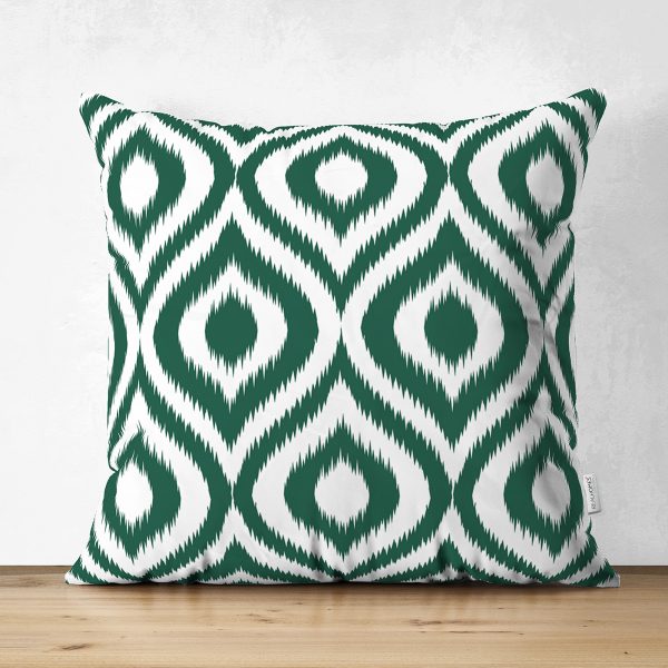 Özel Tasarım Koyu Yeşil İkat Desenli Çift Taraflı Dijital Baskılı Süet Yastık Kırlent Kılıfı