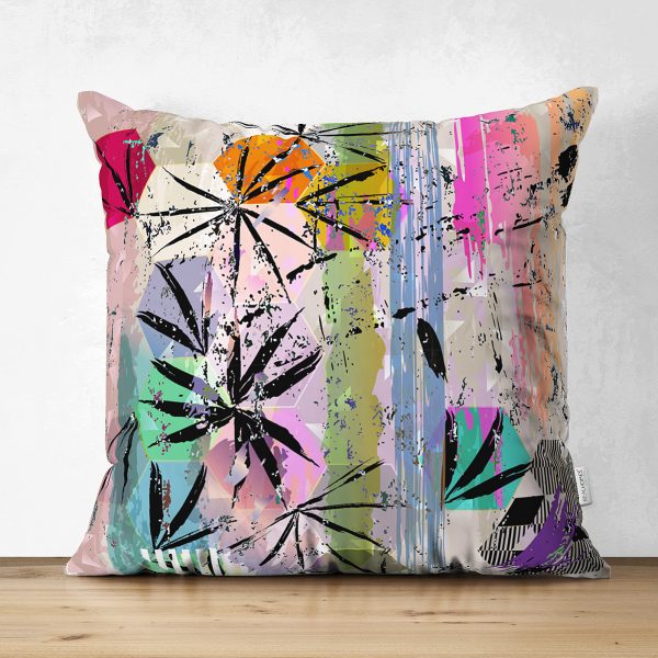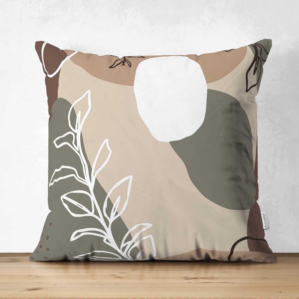 Çift Taraflı Modern Yaprak Desenli Dijital Baskılı Süet Yastık Kırlent Kılıfı
