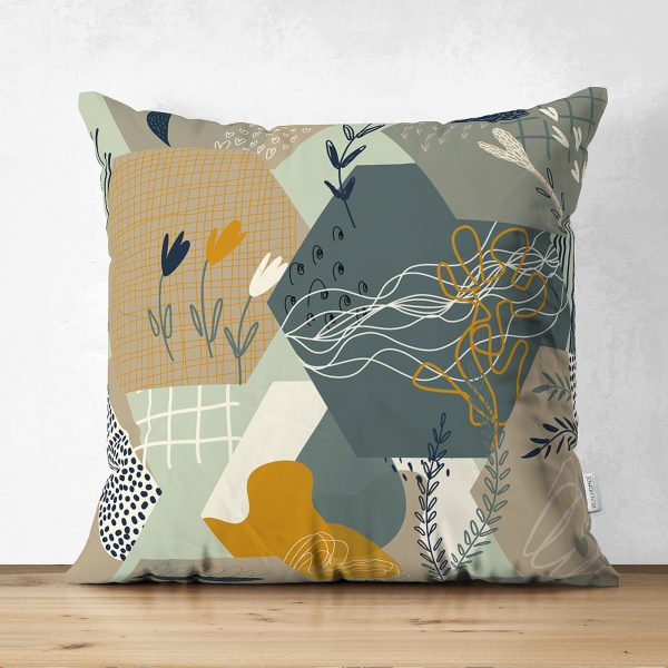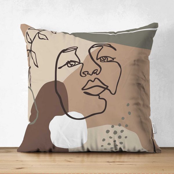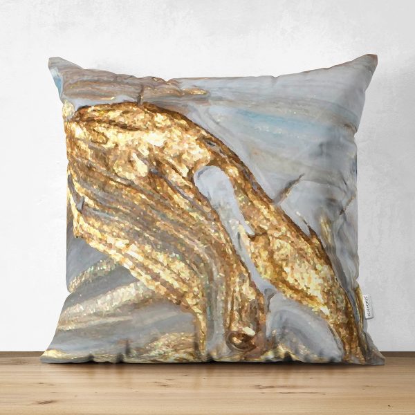 Çift Taraflı Gold Detaylı Soyut Çizimli Dijital Baskılı Modern Süet Yastık Kırlent Kılıfı