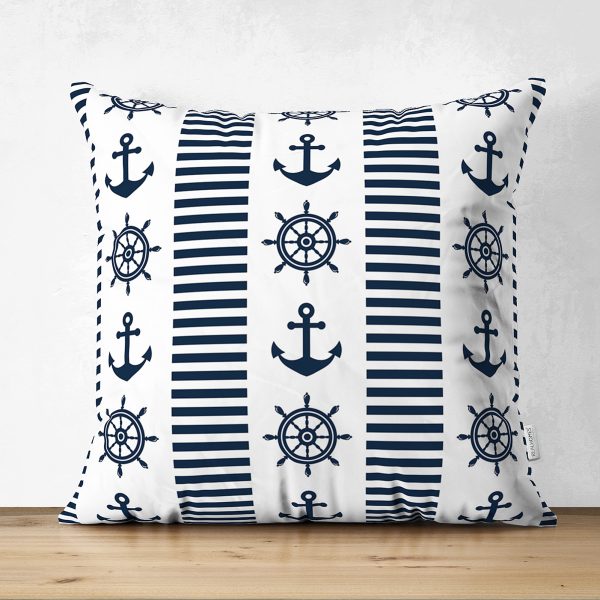 Lacivert Denizci Motifleri Çift Taraflı Dijital Baskılı Süet Yastık Kırlent Kılıfı