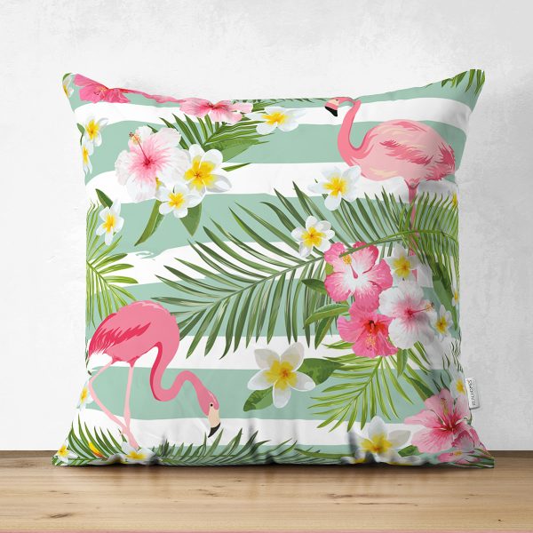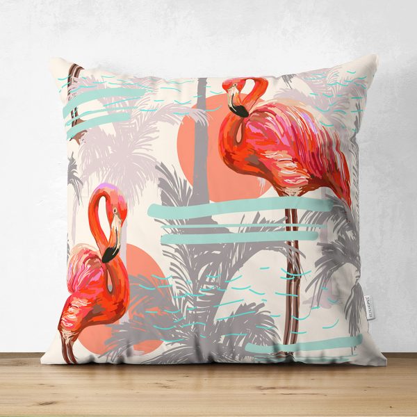 Çift Taraflı Flamingo Desenli Dijital Baskılı Süet Yastık Kırlent Kılıfı