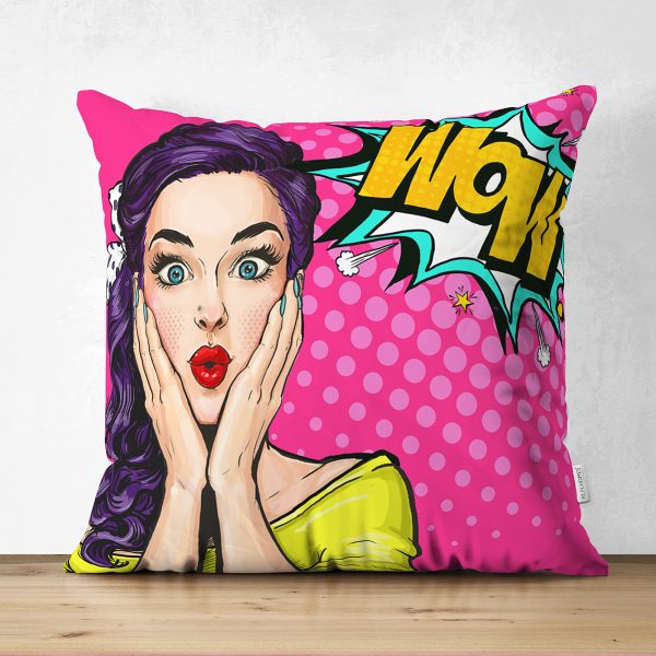Çift Taraflı Pop Art Resimli Dijital Baskılı Dekoratif Süet Yastık Kırlent Kılıfı