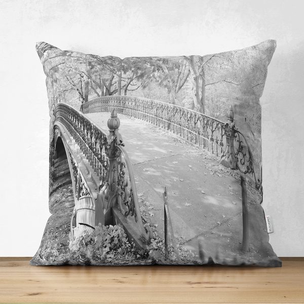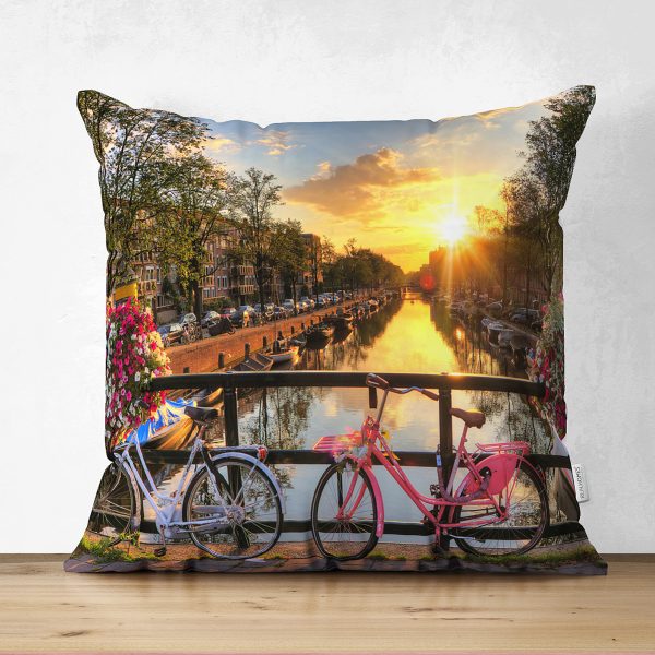 Çift Taraflı Manzara Desenli Dijital Baskılı Dekoratif Süet Yastık Kırlent Kılıfı