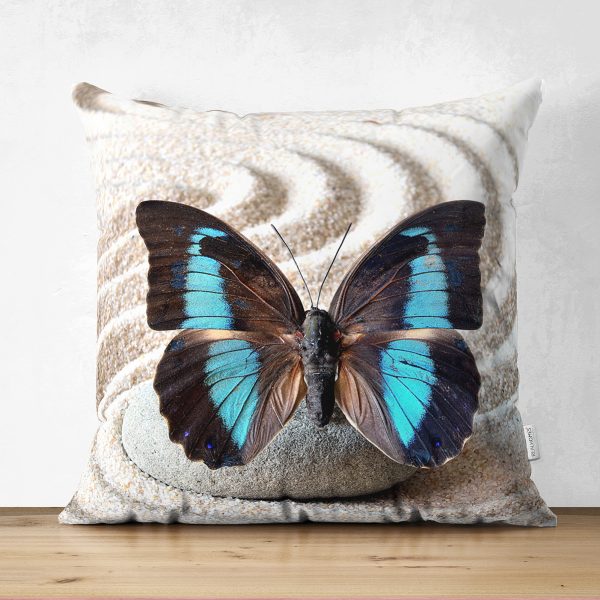 Çift Taraflı Modern Kelebek Dijital Baskılı Dekoratif Süet Yastık Kırlent Kılıfı