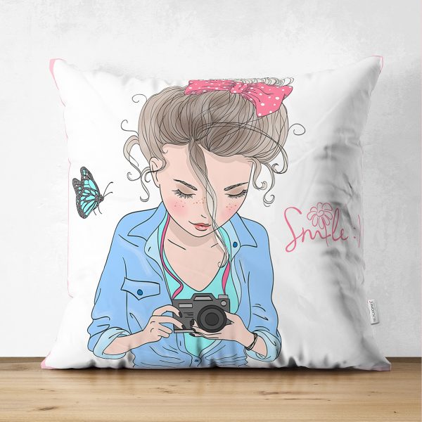 Çift Taraflı Özel Tasarım Smile Take Up Desenli Çift Taraflı Dekoratif Süet Yastık Kırlent Kılıfı