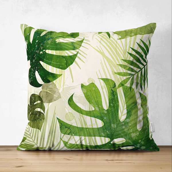 Çift Taraflı Amazon Yaprakları Dijital Baskılı Modern Süet Yastık Kırlent Kılıfı
