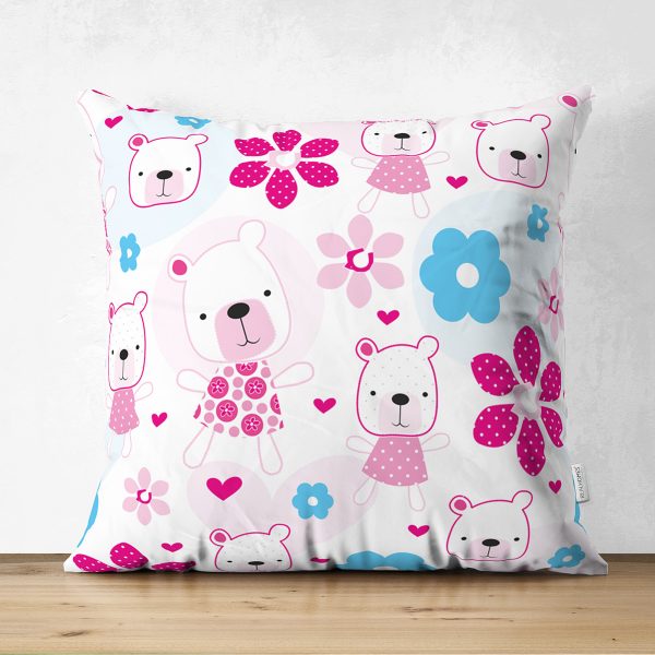 Çift Taraflı Renkli Zeminde Sincap Desenli Dijital Baskılı Modern Süet Yastık Kırlent Kılıfı