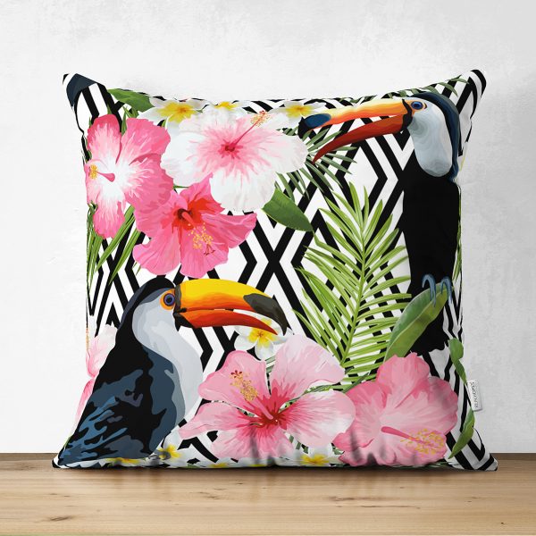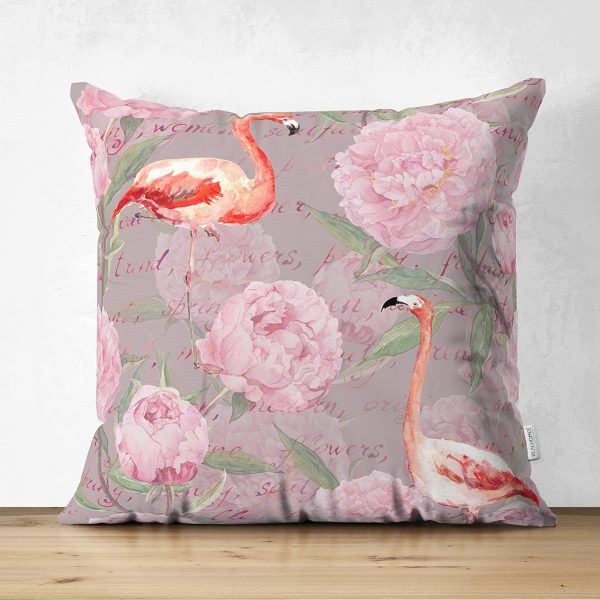 Çift Taraflı Flamingo Desenli Dijital Baskılı Süet Yastık Kırlent Kılıfı